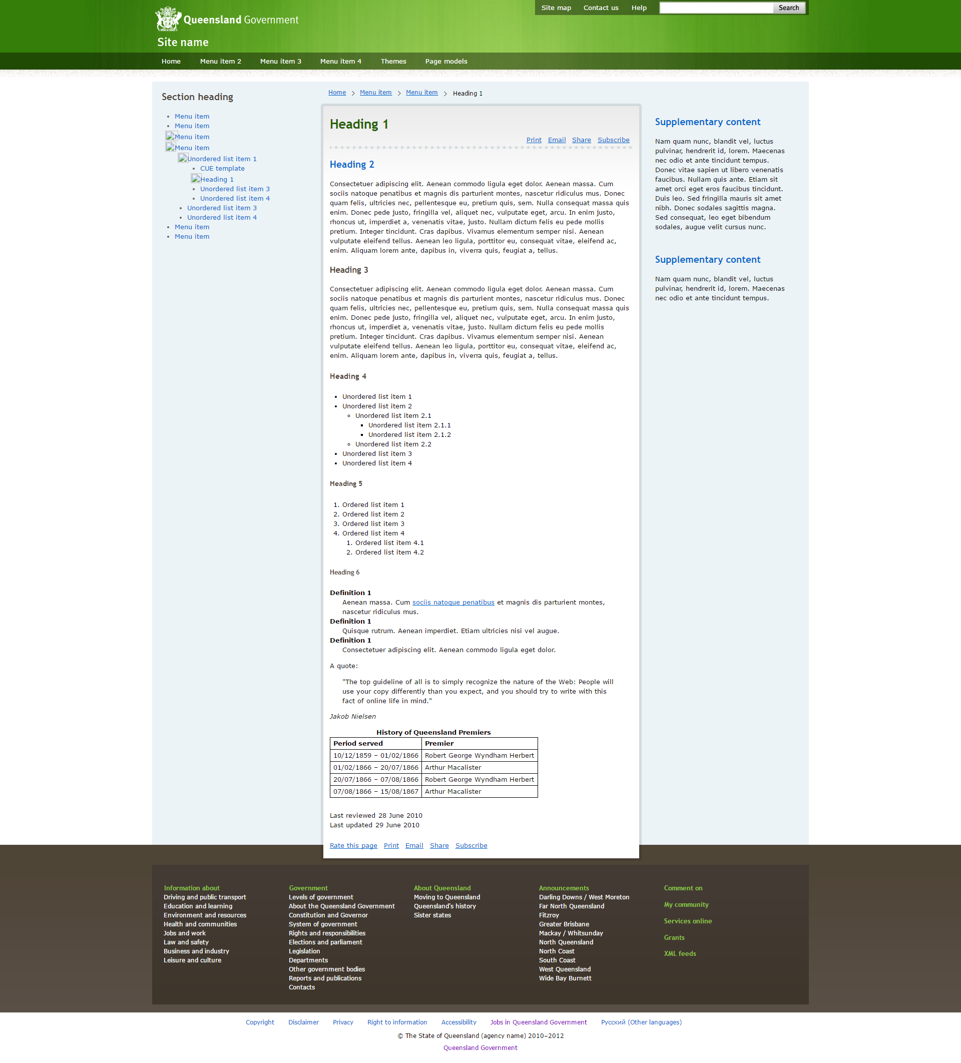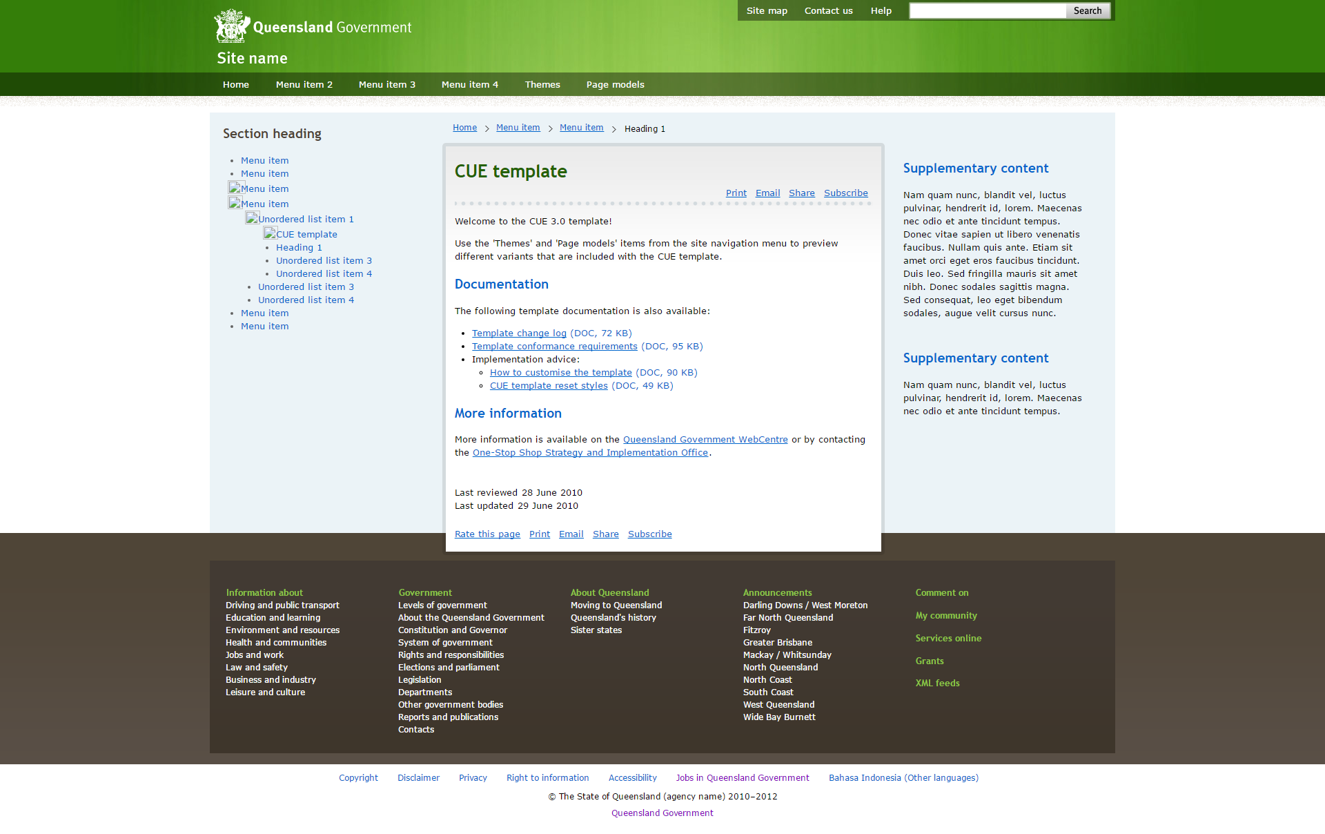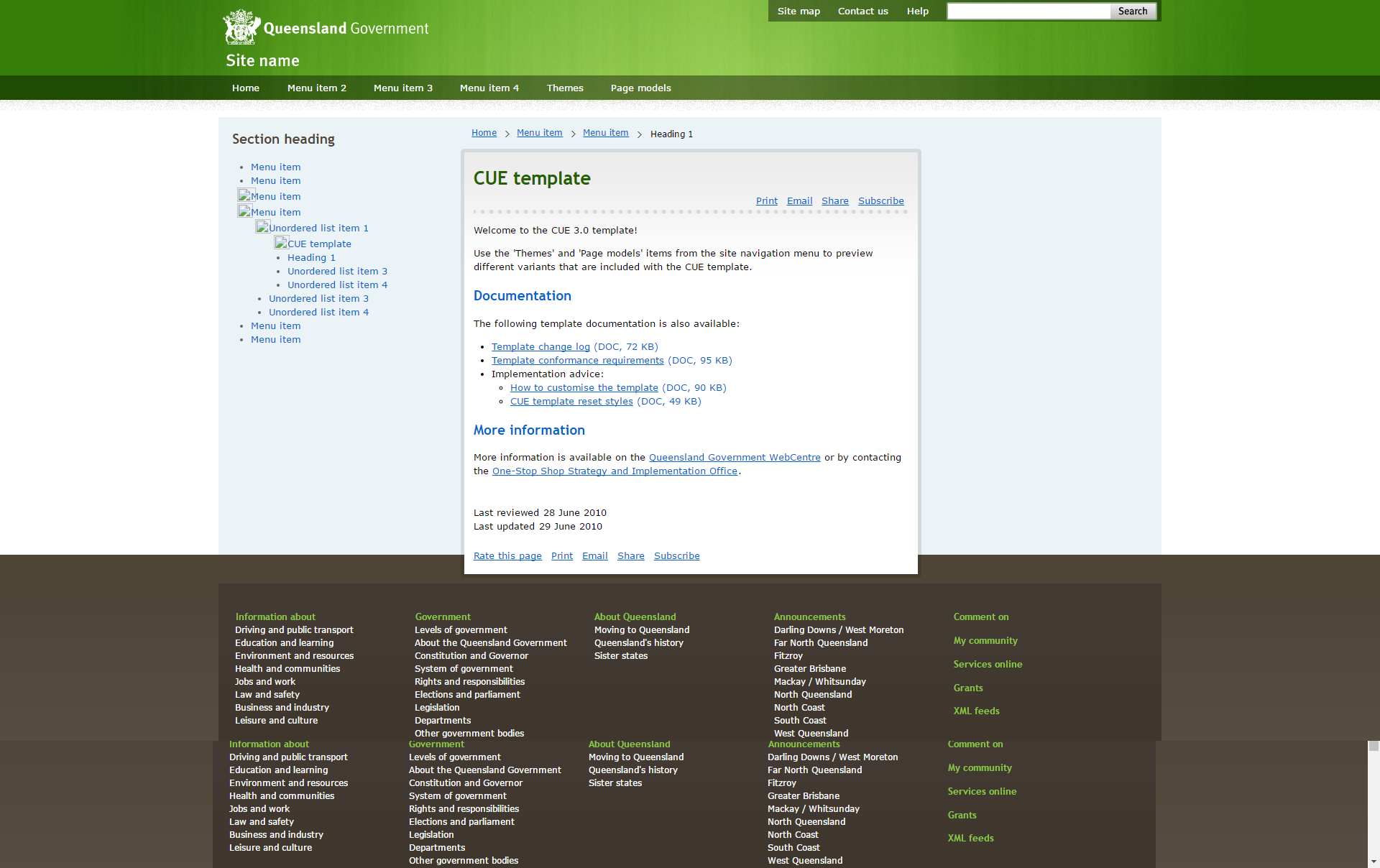 Note: the 'Themes' and 'Page models' links in the site navigation will present variations on the template.