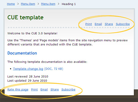 Agencies may choose to include 'Rate this page'. If used, 'rate this page' or page-specific feedback must display within the post-content page options area, after the above options (e.g. print etc.).