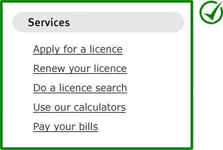 Where websites contain a number of online services, it is appropriate that the services element on the homepage would contain the most-used services.