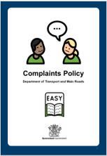 - Easy to Read Complaints Policy, Queensland Government (Department of Transport and Main Roads)